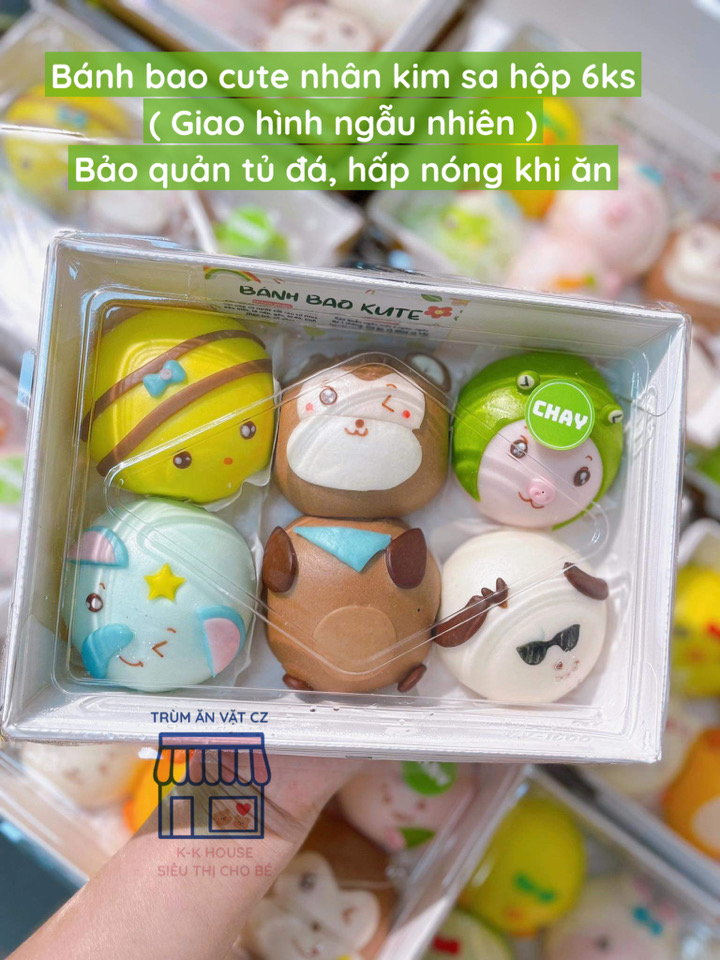 BÁNH BAO CUTE NHÂN KIM SA HỘP 6 CHIẾC ( BẢO QUẢN ĐÁ ) - GIAO HÌNH NGẪU NHIÊN