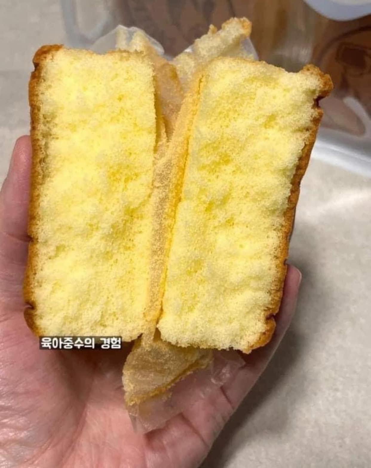 Cốt bánh tơi xốp không bị dày ăn bứ cổ đâu, mở gói ra thôi đã thơm lừng.