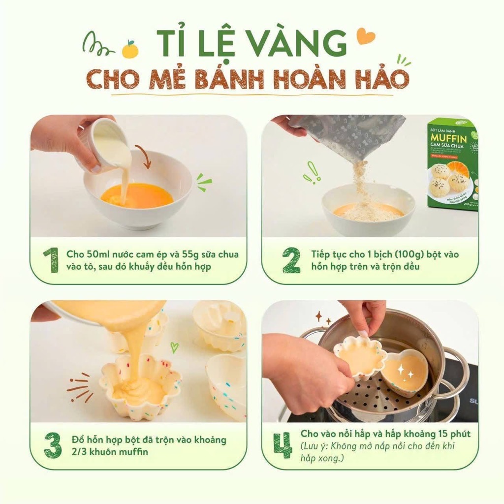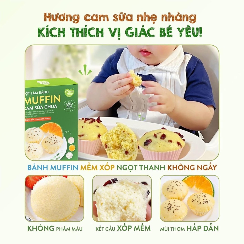 🌈💯MỞ HỘP SIÊU PHẨM MỚI CHO BÉ YÊU 🥰 ❤️BỘT LÀM BÁNH MUFFIN CAM SỮA CHUA MĂMMY ☺️ 👉Mềm xốp – Ngon thơm – Chuẩn dinh dưỡng! ✅Mẹ ơi, bây giờ làm bánh cho bé dễ chưa từng thấy: • KHÔNG cần lò nướng – chỉ cần hấp 15 phút là bé có ngay mẻ bánh muffin thơm nức mũi! • Bột pha sẵn siêu tiện: mẹ chỉ cần trộn với nước cam + sữa chua là xong ngay! 📝Công thức đặc biệt cho bé từ 6M+: • Bổ sung Canxi từ tảo biển, DHA, Vitamin A, D giúp bé chắc xương, sáng mắt. • Nguyên liệu tự nhiên, không chất bảo quản, không phẩm màu – mẹ hoàn toàn yên tâm! • Vị cam sữa chua thanh mát, thơm ngọt tự nhiên, cực kích thích vị giác, bé ăn mê mẩn không ngừng. 🧁🥧Bột thần thánh – mẹ vụng mấy cũng thành “thánh làm bánh” trong tích tắc! Nhanh tay rinh ngay để mỗi ngày là một bất ngờ ngọt ngào cho thiên thần nhỏ nhé!