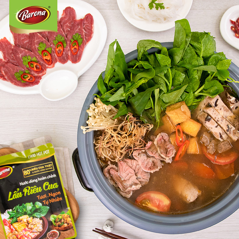 - 1 gói Nước dùng hoàn chỉnh Barona - Lẩu Riêu Cua