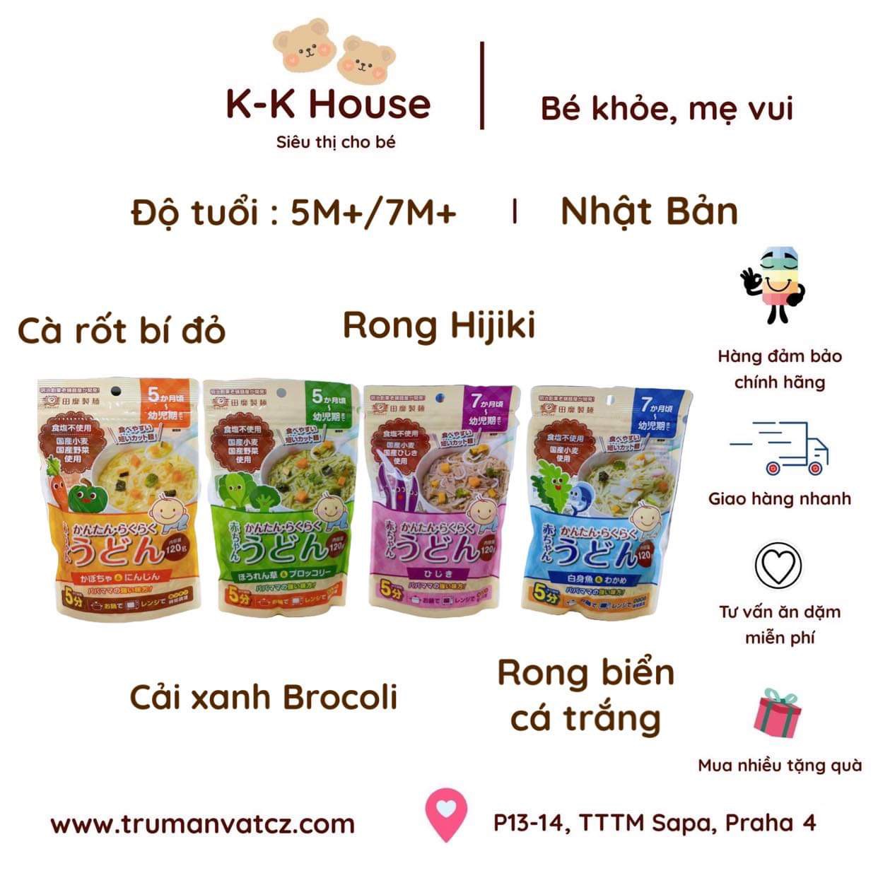 Sản phẩm này không sử dụng muối ăn, chỉ sử dụng mì somen làm từ bột mì. Sợi cắt ngắn khoảng 2.5 cm dễ cho bé em.