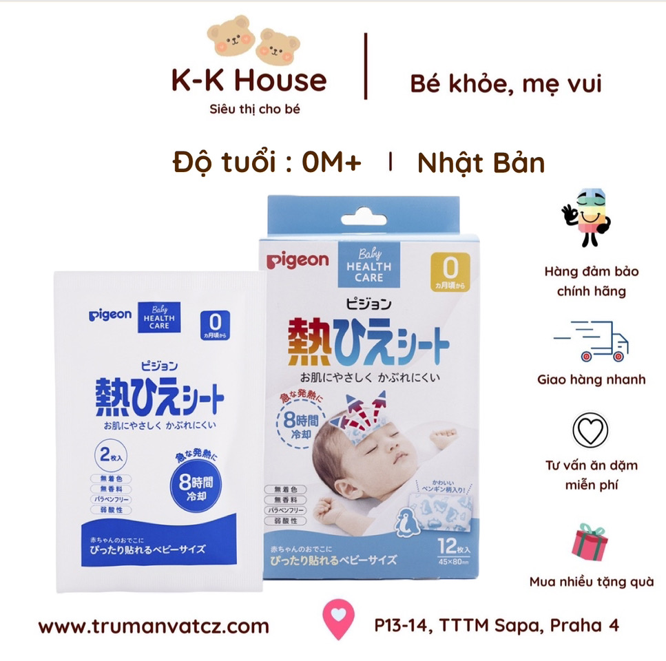 Miếng dán hạ sốt Pigeon gồm 12 miếng, có kích thước phù hợp với trẻ sơ sinh, giúp hạ sốt nhanh chóng, phòng ngừa co giật do sốt cao cực kỳ hiệu quả mà không gây tác dụng phụ, dùng để dán trên trán, vai, má. Mỗi miếng có tác dụng tới 8 tiếng.,độ ẩm trong có trong gel tác dụng hấp phụ nhiệt và bay hơi ra ngoài, giúp phóng thích nhiệt, độ lạnh không cao nên sẽ không làm bé bị lạnh đột ngột.