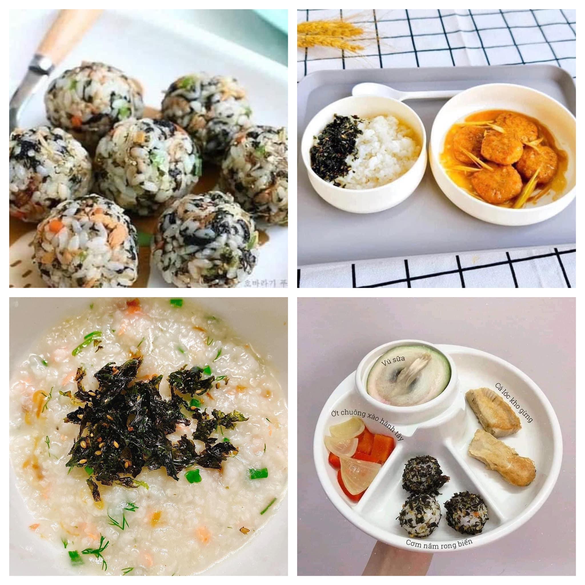 - Mỗi túi gồm 3 gói nhỏ, dễ dàng cho chế biến và bảo quản. Mẹ có thể chế biến thành các món cơm nắm, cơm trộn, trứng cuộn rong biển...