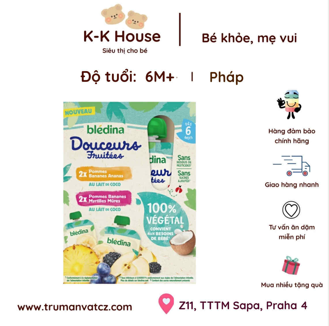 SỮA CHUA PHÔ MAI DOURCEURS BLEDINA MIX TRÁI CÂY TÚI - HỘP 4 TÚI X 90G ( 6M+ )