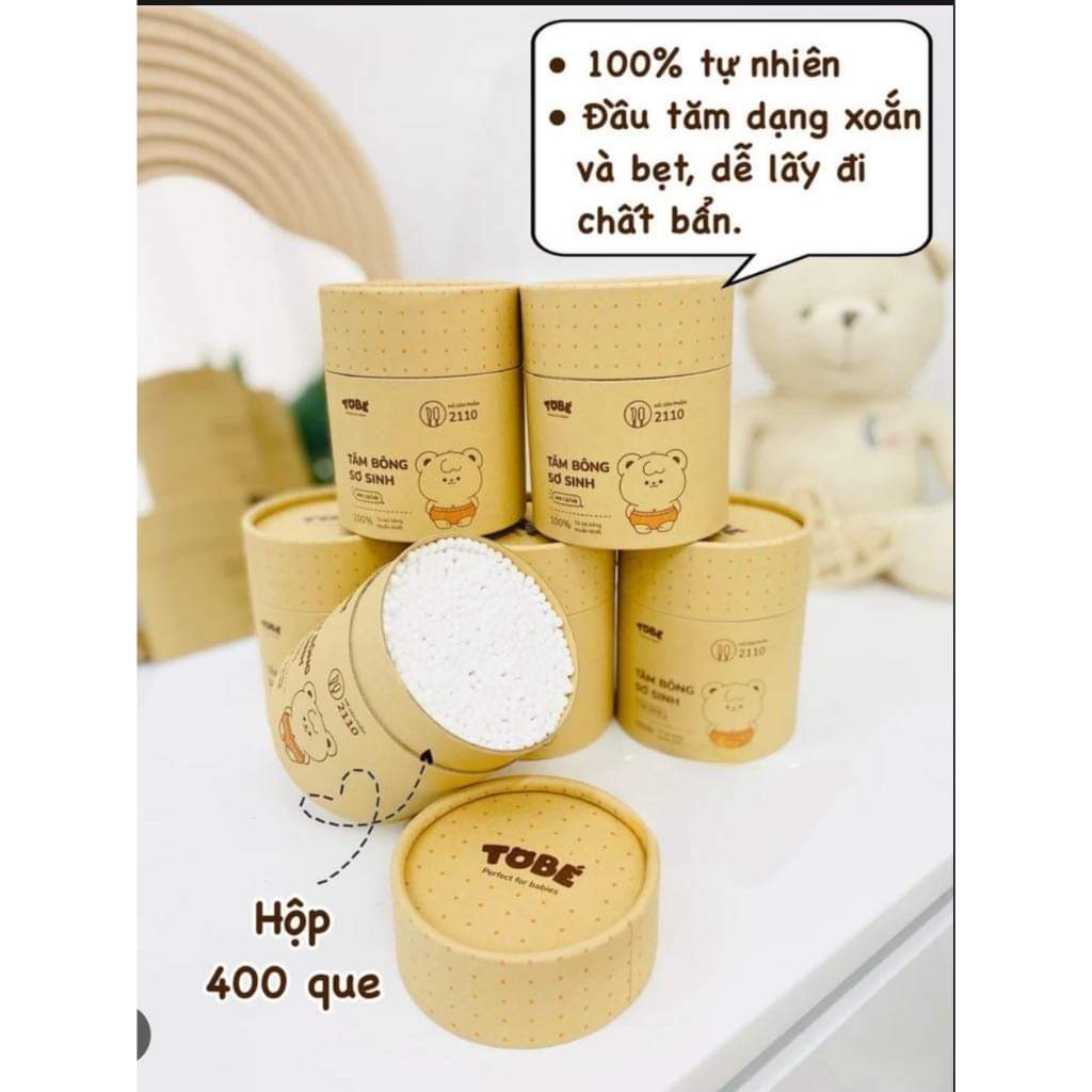 Tăm bông sơ sinh TOBE 1 đầu xoắn, 1 đầu bẹp hộp 400 chiếc